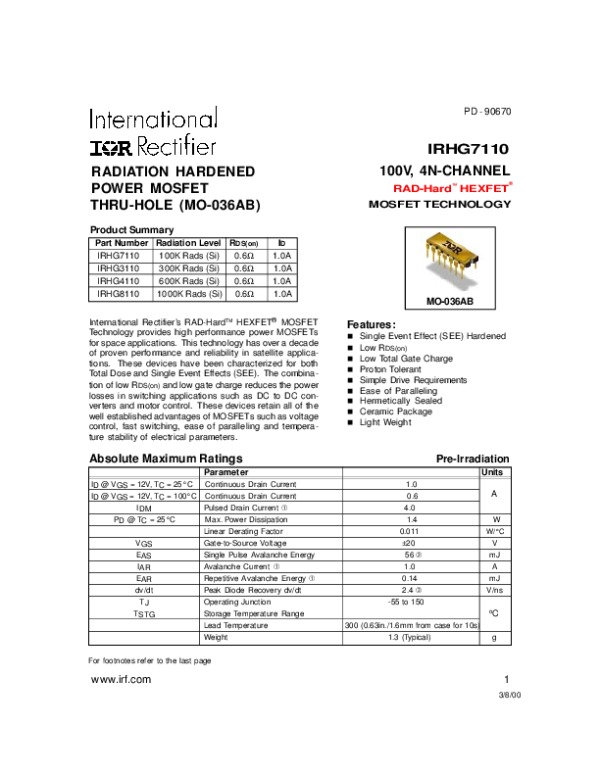 Datasheet IRHG7110: