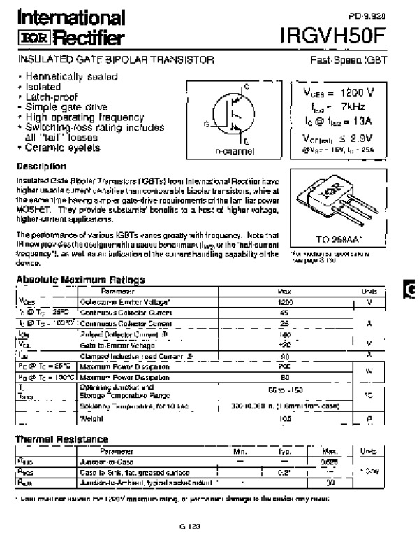 Просмотр технического описания на IRGVH50F
