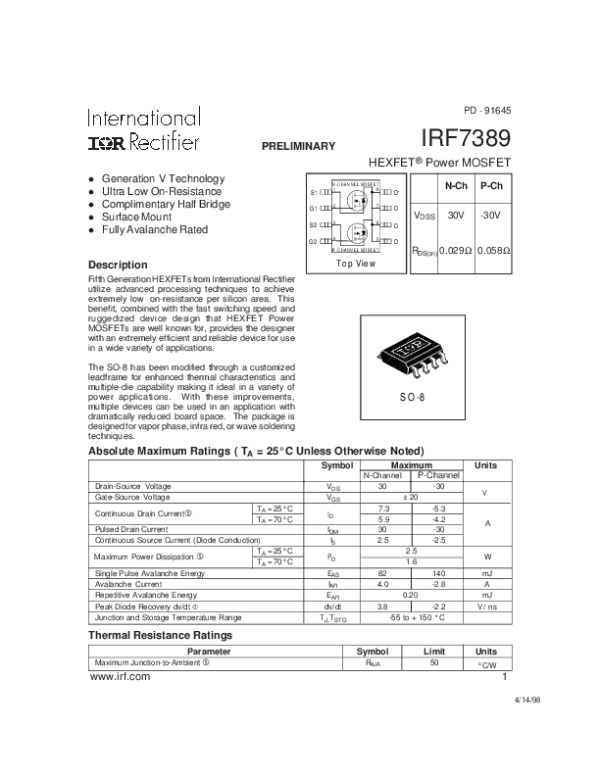 Datasheet IRF7389: