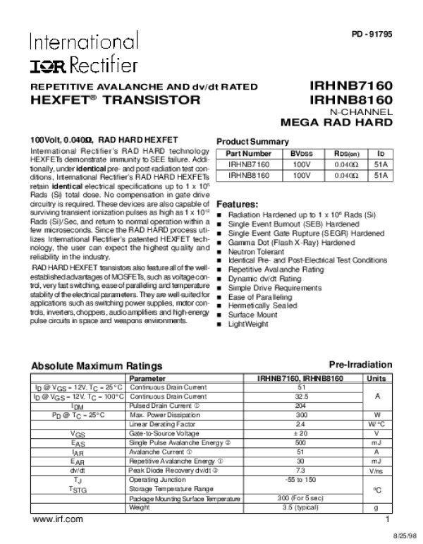 Datasheet IRHNB7160: