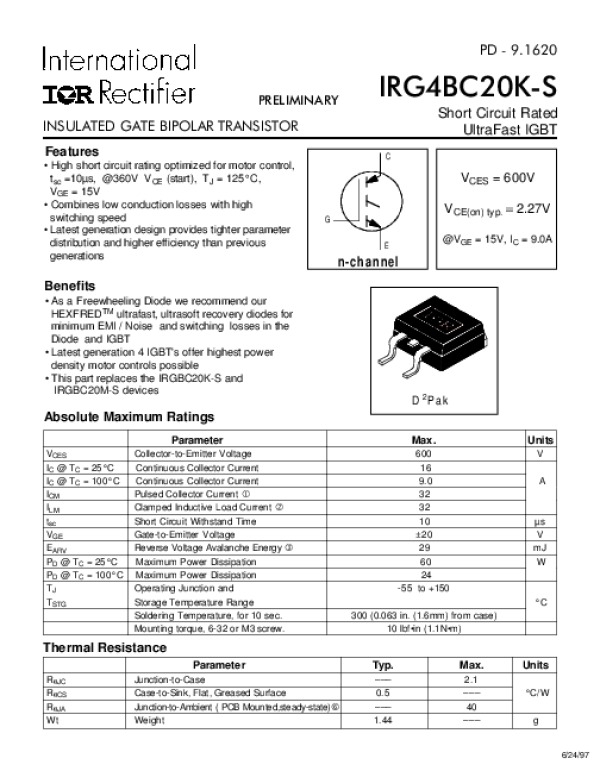 Datasheet IRG4BC20KS: