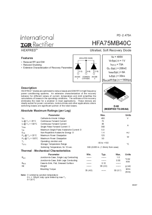 Datasheet HFA75MB40C: