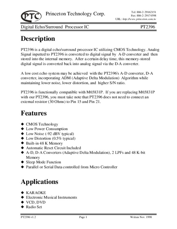 Просмотр технического описания на PT2396S