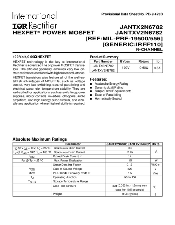 Datasheet JANTX2N6782: