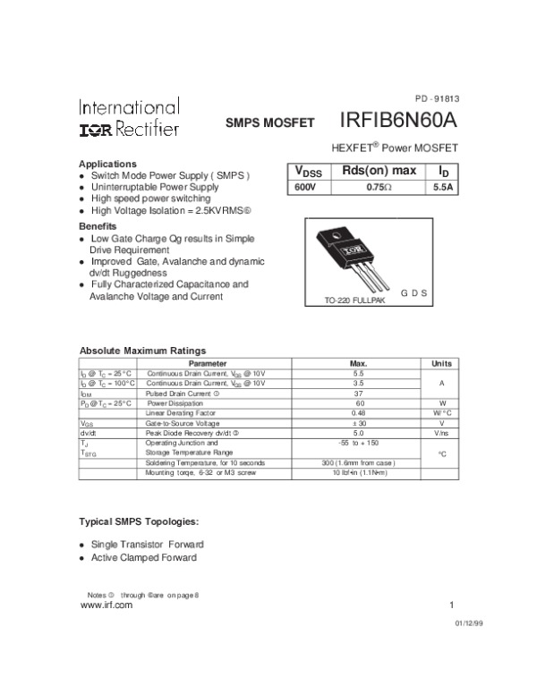 Datasheet IRFIB6N60A: