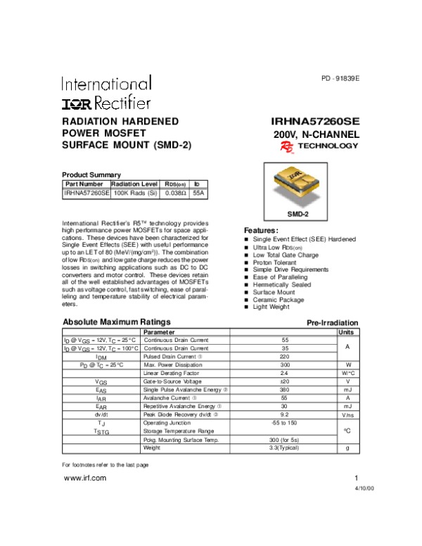 Datasheet IRHNA57260SE: