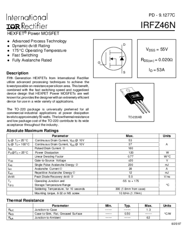 Datasheet IRFZ46N: