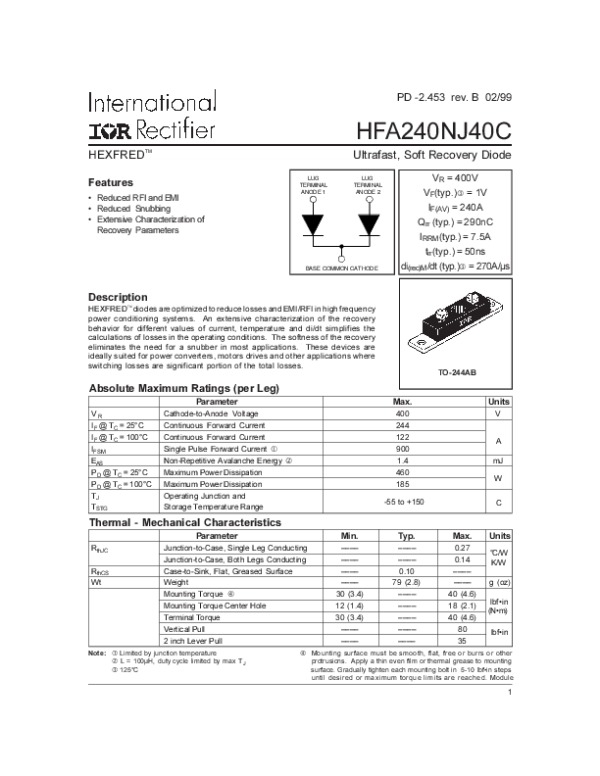 Datasheet HFA240NJ40C: