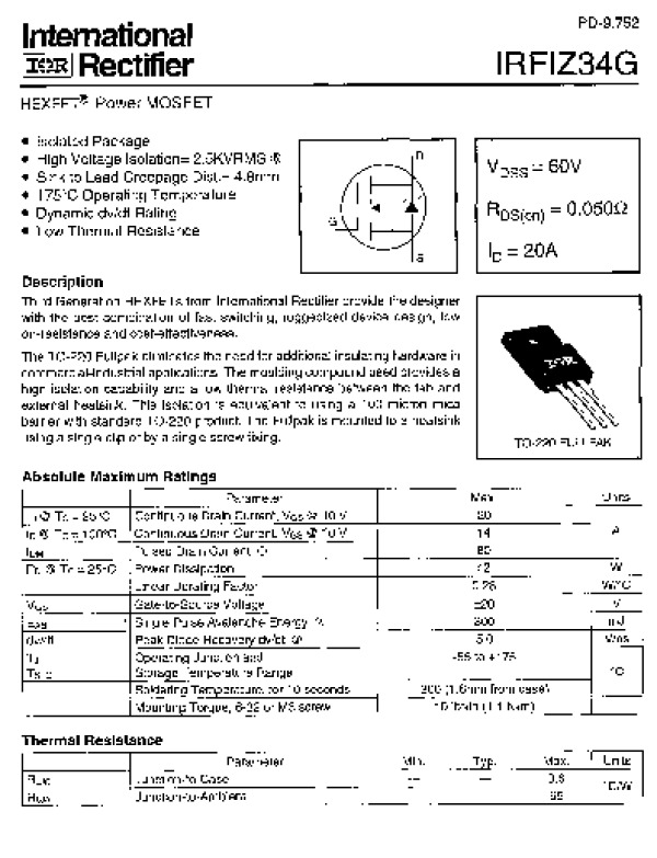 Datasheet IRFIZ34G: