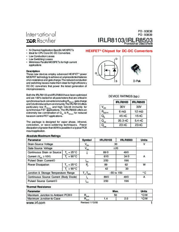 Просмотр технического описания на IRLR8103