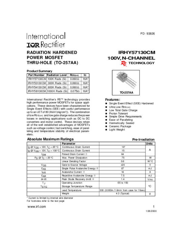 Datasheet IRHY57130CM: