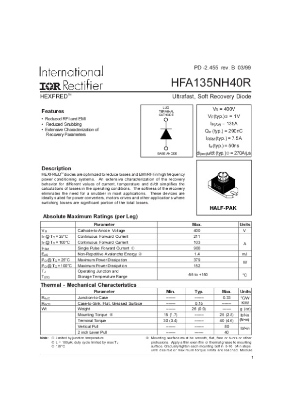 Datasheet HFA135NH40R:
