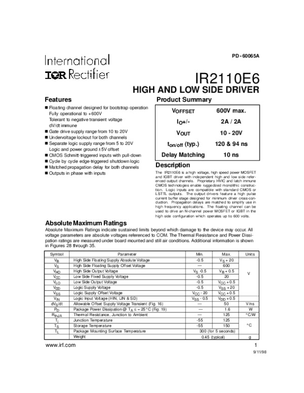 -> Просмотр технического описания на IR2110E6