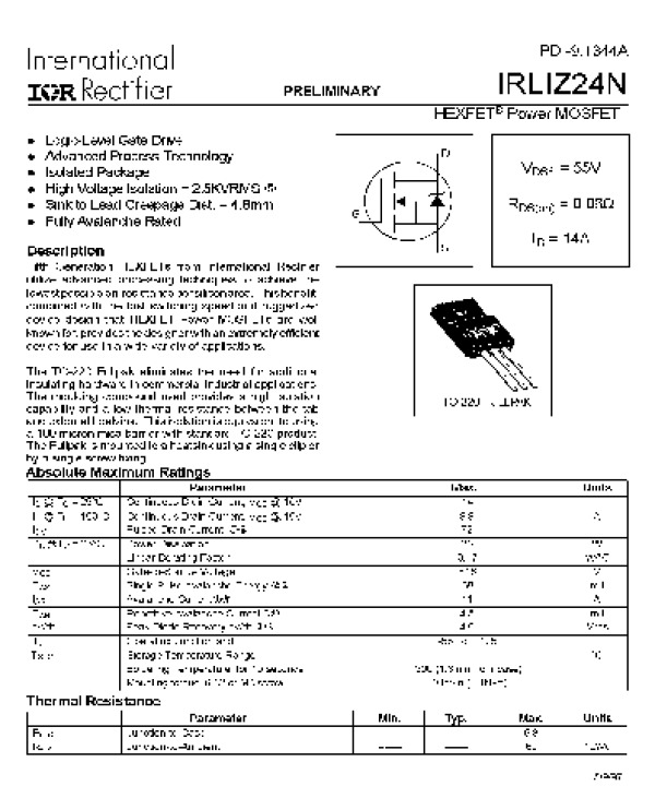 Просмотр технического описания на IRLIZ24N