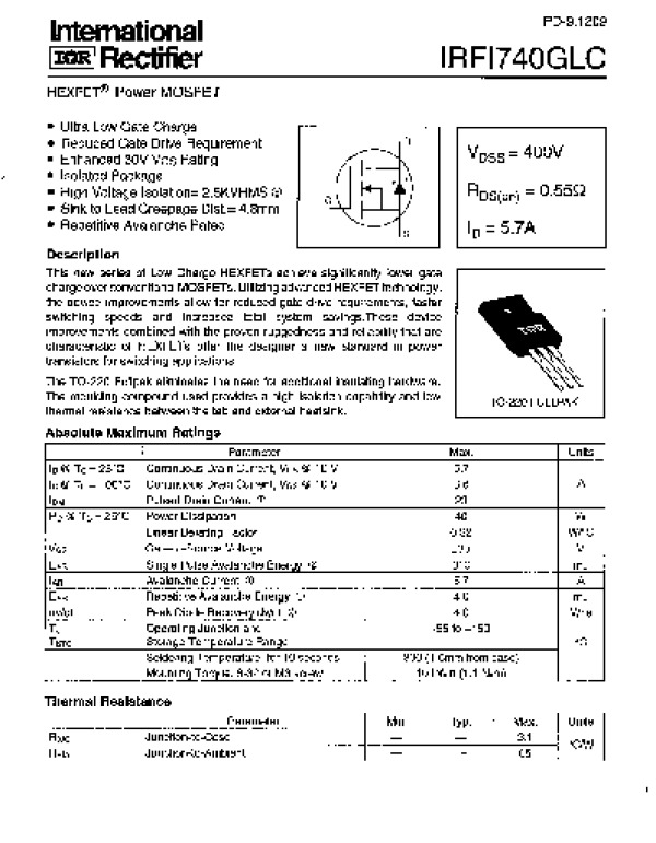Datasheet IRFI740GLC: