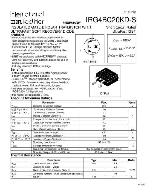 Datasheet IRG4BC20KDS: