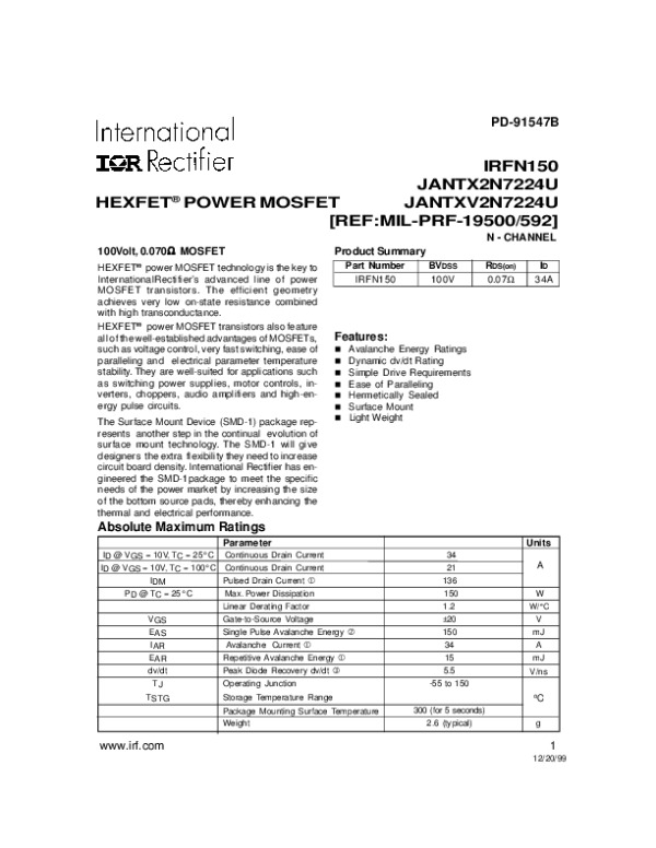 Datasheet IRFN150: