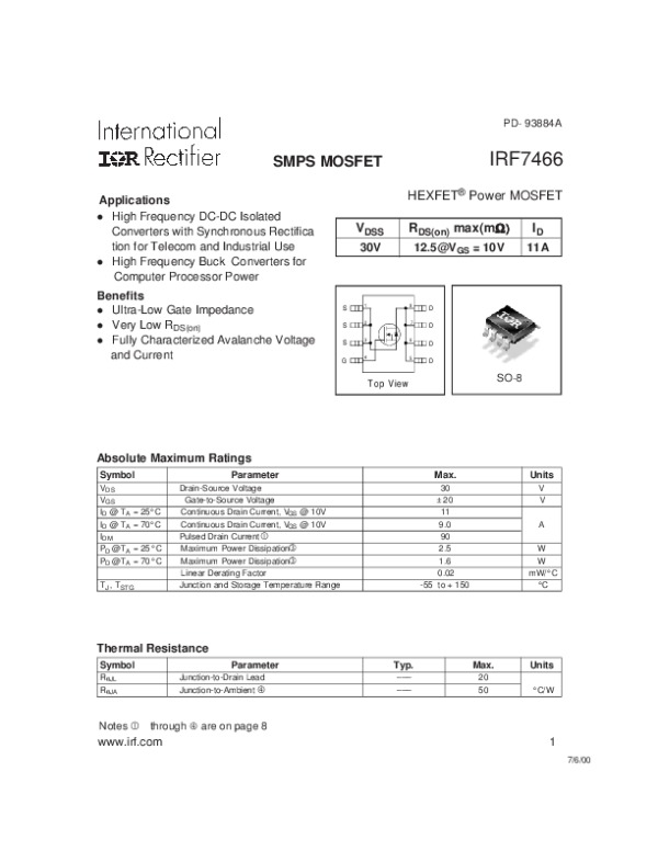 -> Просмотр технического описания на IRF7466