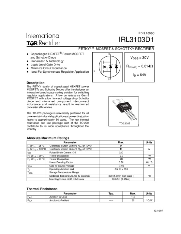 Просмотр технического описания на IRL3103D1