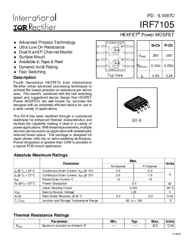 Просмотр технического описания на IRF7105N