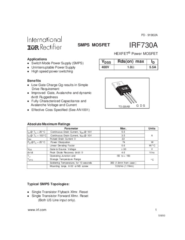 -> Просмотр технического описания на IRF730A