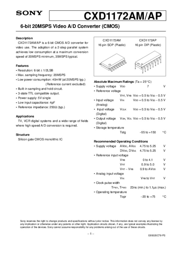 Datasheet CXD1172: