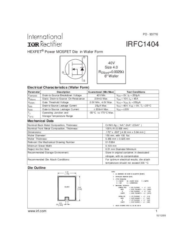 Datasheet IRFC1404: