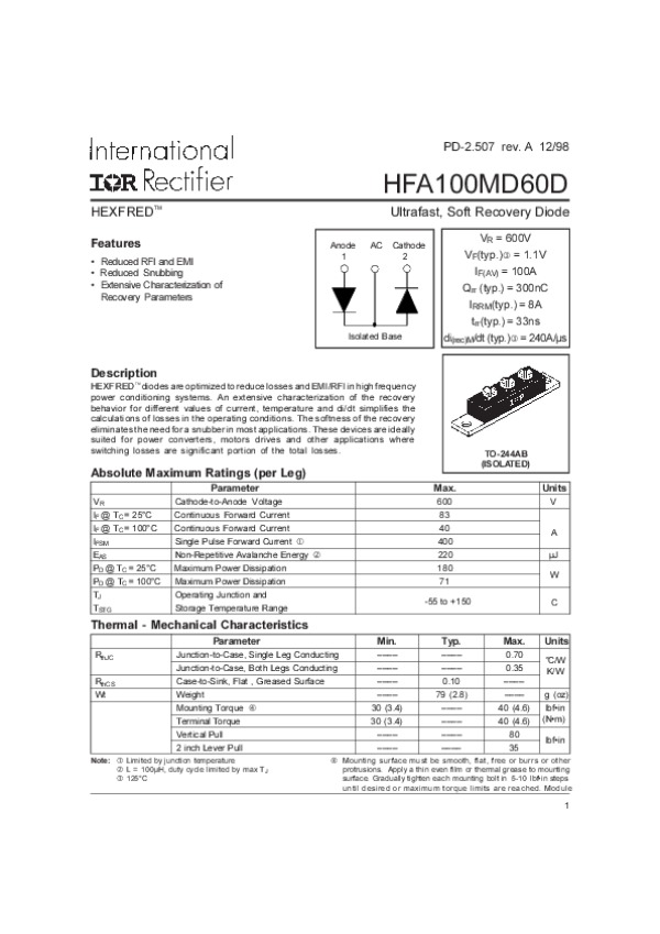Datasheet HFA100MD60D: