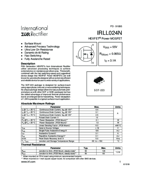 Просмотр технического описания на IRLL024N