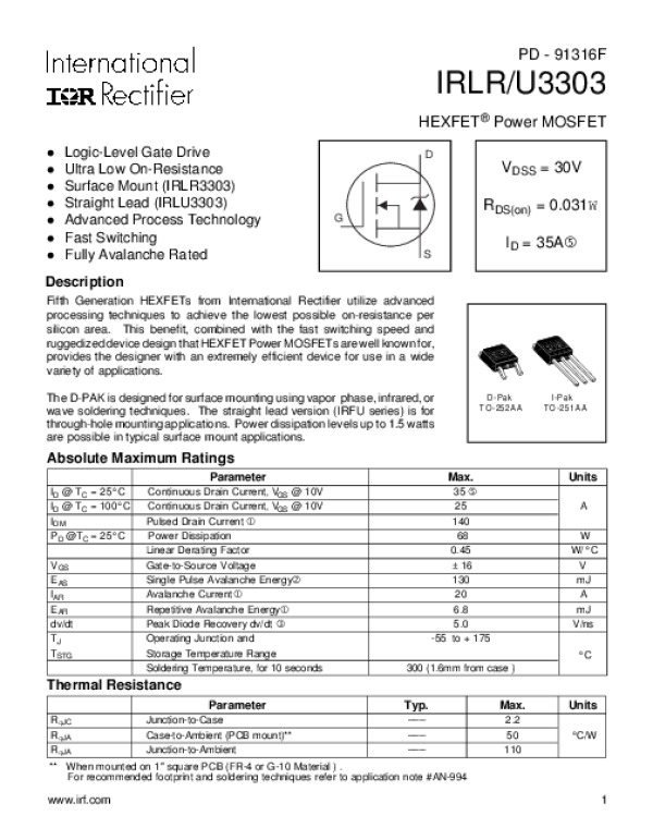 Datasheet IRLR3303: