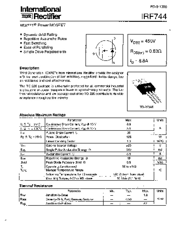 Datasheet IRF744: