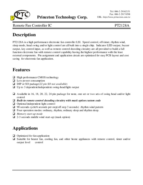 Datasheet PT2128S: