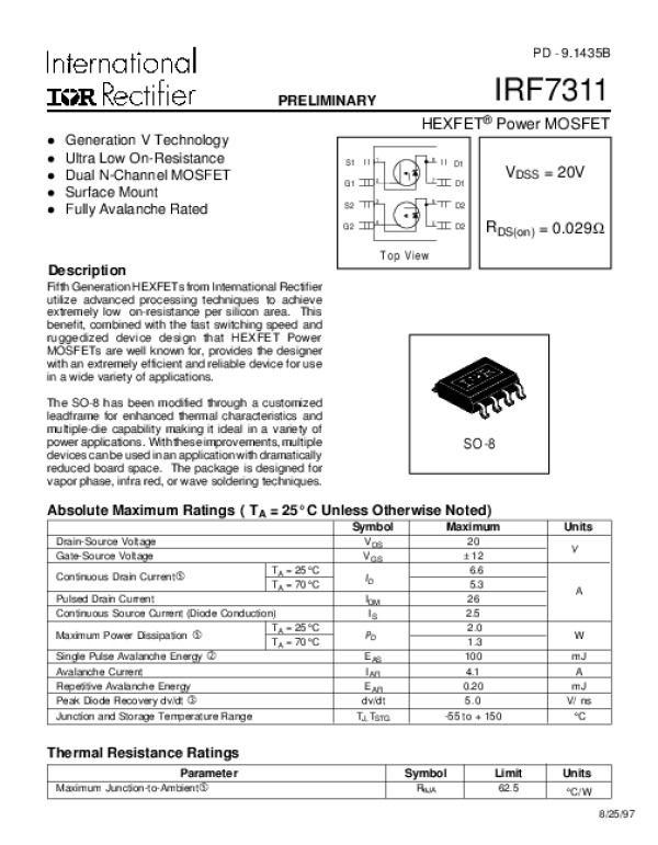 Просмотр технического описания на IRF7311