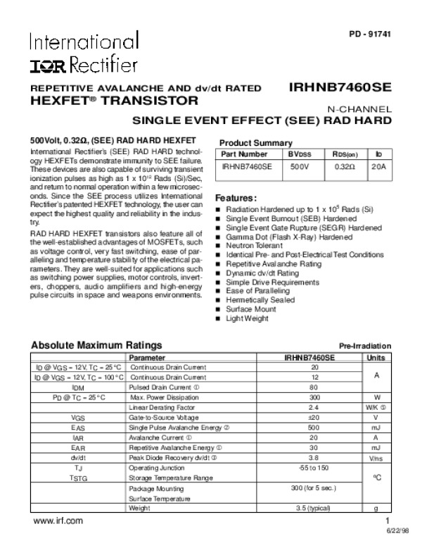 Datasheet IRHNB7460SE: