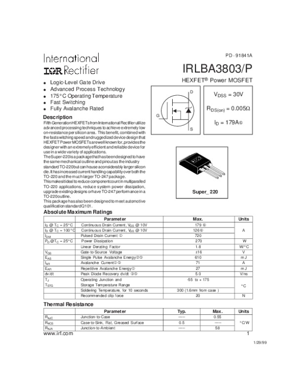 Просмотр технического описания на IRLBA3803