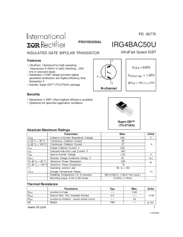 Datasheet IRG4BAC50U:
