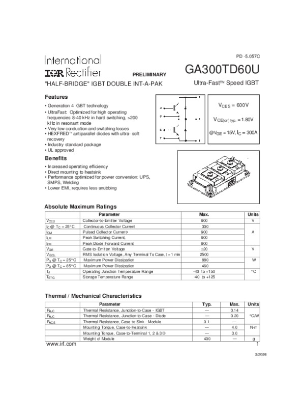 Datasheet GA300TD60U: