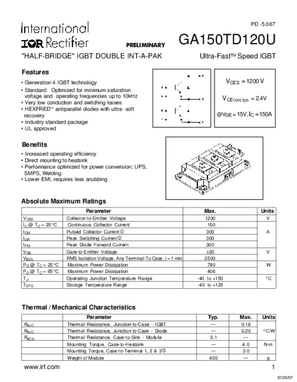 Datasheet GA150TD12U: