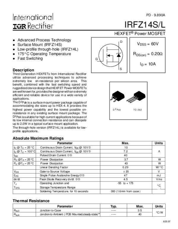 Datasheet IRFZ14S: