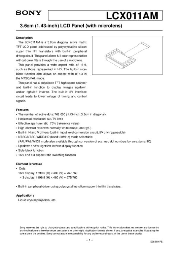 Datasheet LCX011: