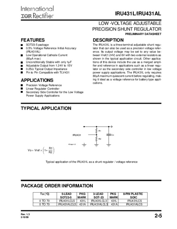 Datasheet IRU431L: