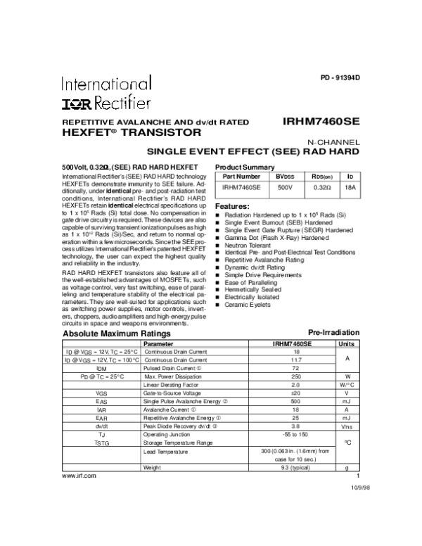 Datasheet IRHM7460SE: