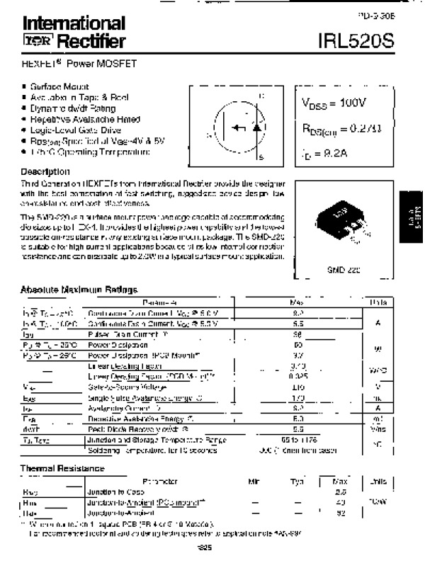 Datasheet IRL520S: