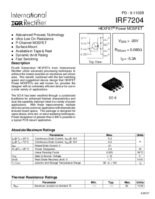 Просмотр технического описания на IRF7204