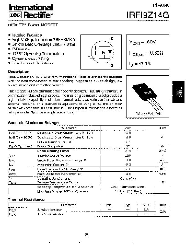 -> Просмотр технического описания на IRFI9Z14G