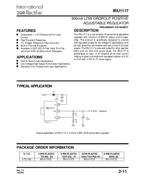 Просмотр технического описания на IRU1117