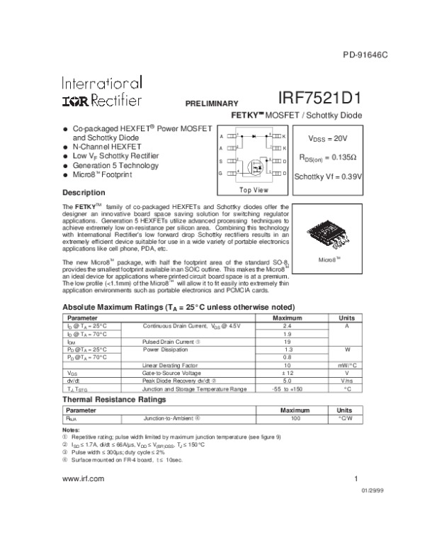 Просмотр технического описания на IRF7521D1