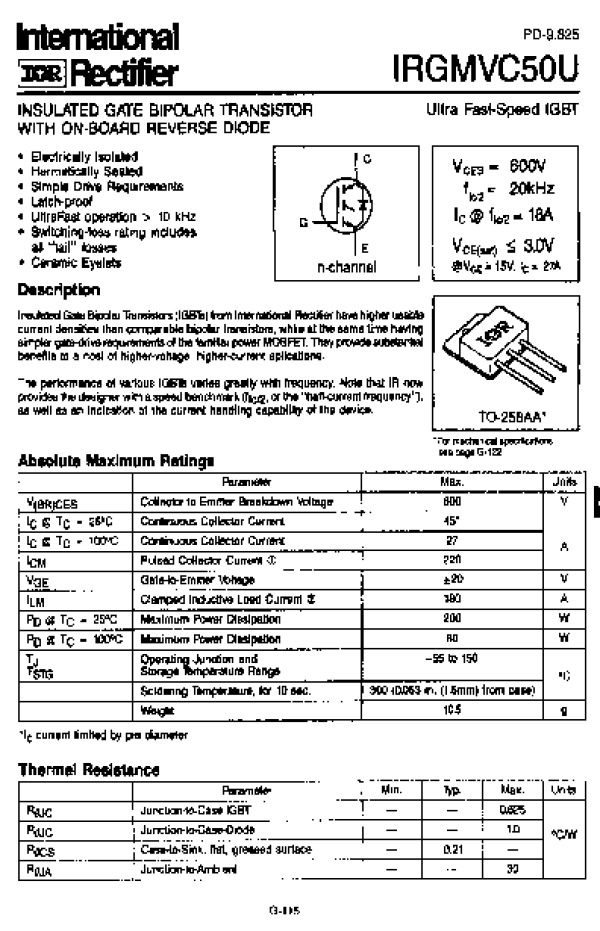 Просмотр технического описания на IRGMVC50U