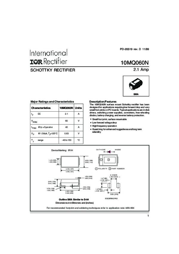 Просмотр технического описания на 10MQ060N