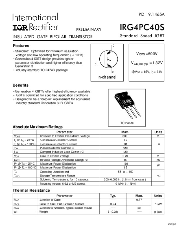 Просмотр технического описания на IRG4PC40S